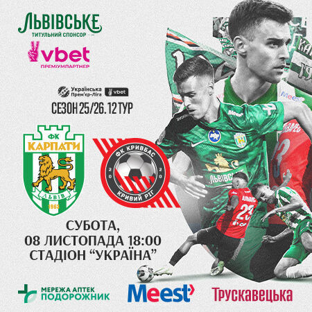 У суботу, 8 листопада, «Карпати» прийматимуть у Львові криворізький «Кривбас». Матч 12-го туру УПЛ розпочнеться о 18:00.