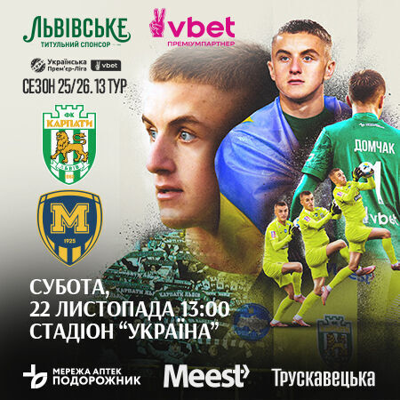 У суботу, 22 листопада, «леви» прийматимуть на стадіоні «Україна» харківський «Металіст 1925». Поєдинок розпочнеться о 13:00. Скористайтеся можливістю наживо побачити останній домашній матч «Карпат» у 2025-му році!